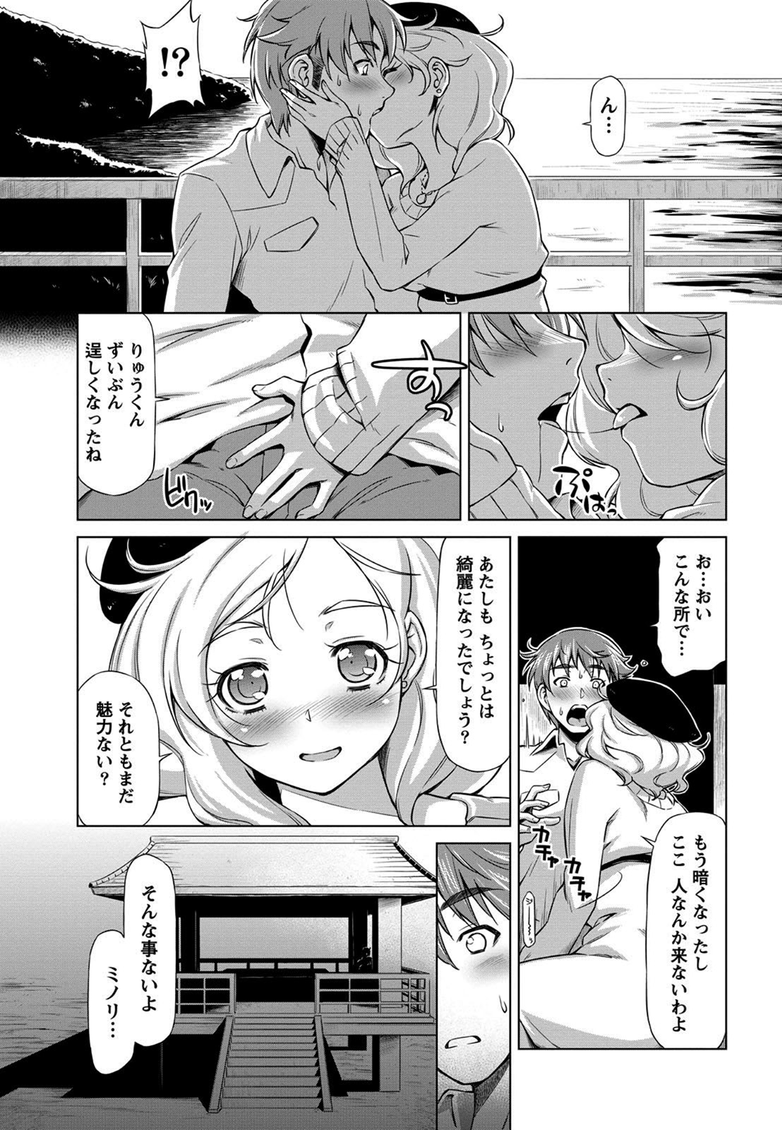 【エロ漫画】幼馴染の彼とイチャイチャしているうちにエッチな展開になっちゃうお姉さん…手マンをされてクンニをされてトロ顔になると生ハメ中出しイチャラブセックスしちゃう【堺はまち:Border line】